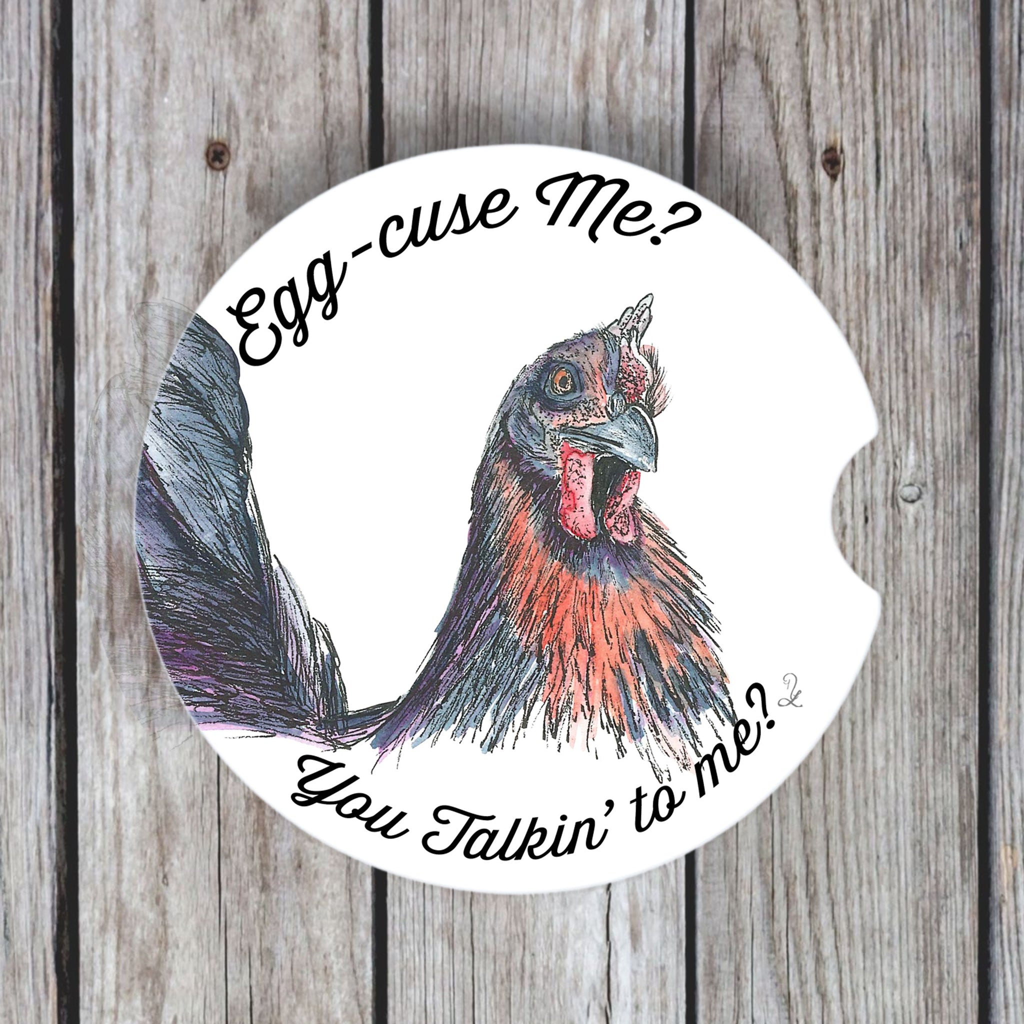 Bring humor and farmhouse sass to your ride with our Snarky Chicken Car Coasters! Each coaster features bold chicken head artwork and witty sayings that keep spills under control—and passengers laughing.